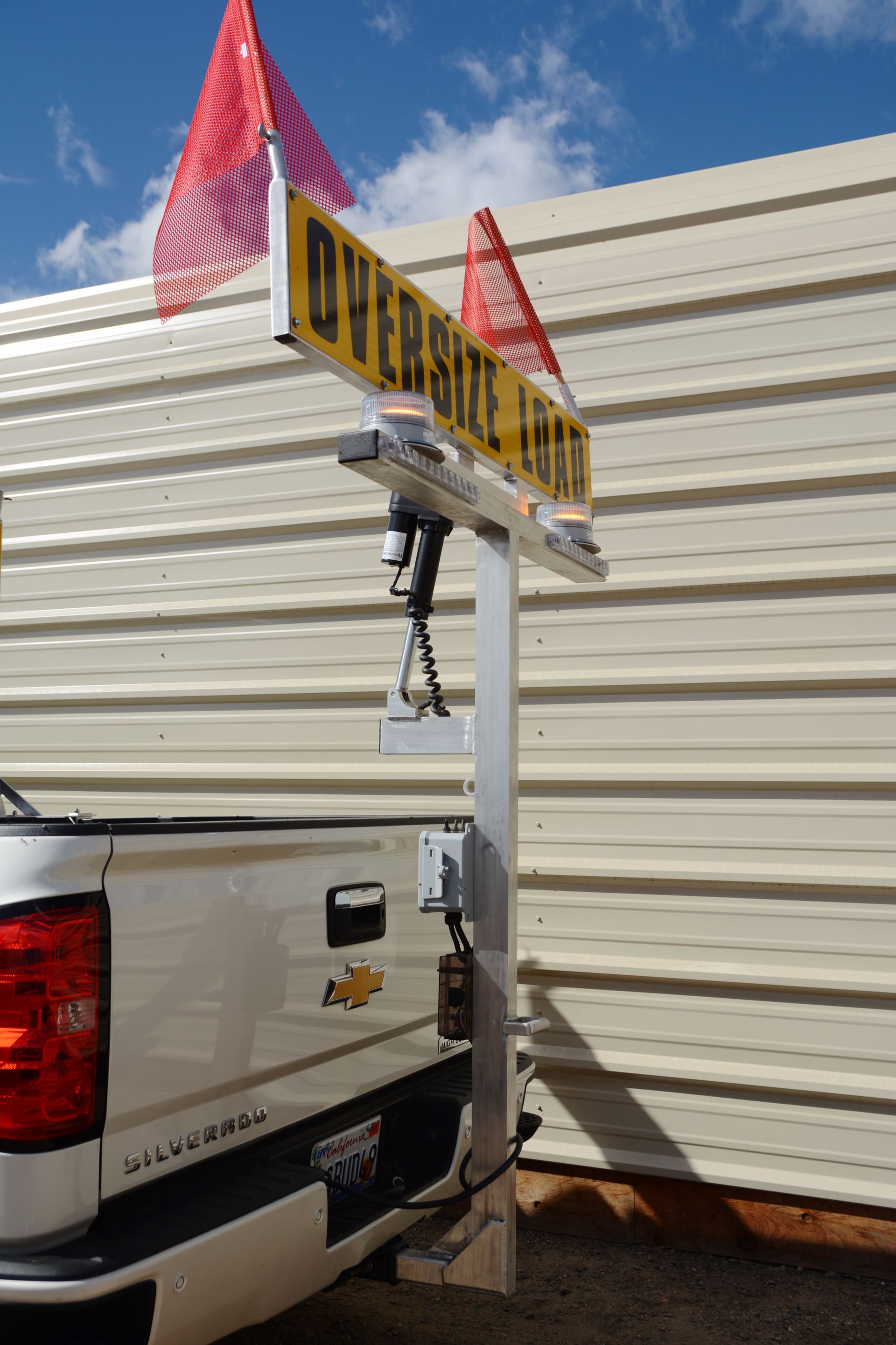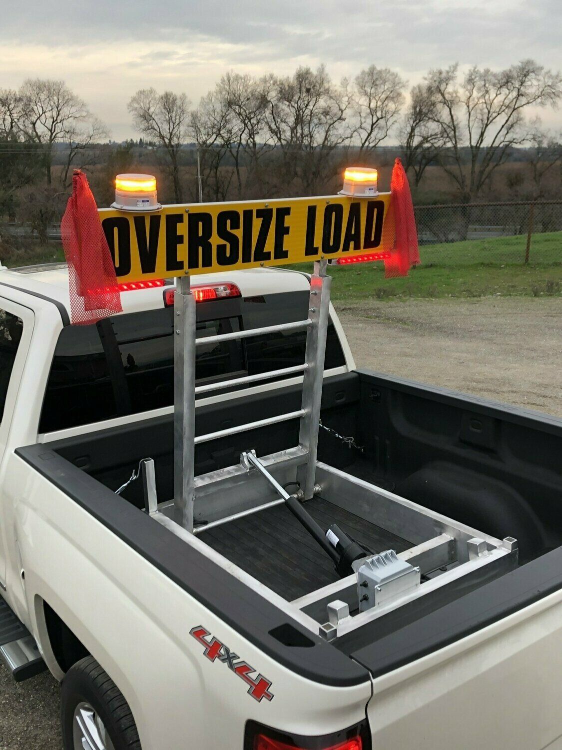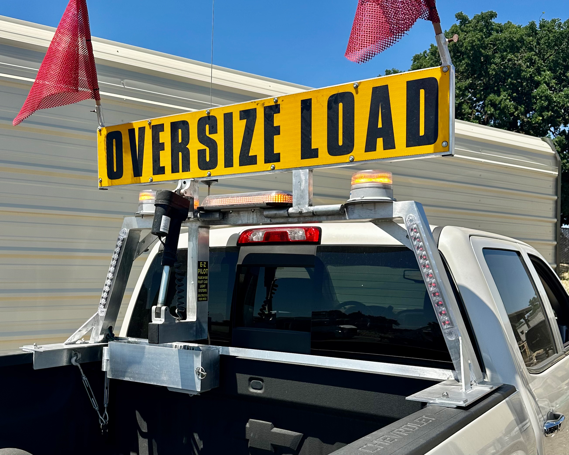 - A 10"x60", two-sided and reflective "Oversize Load" sign with removable red flags