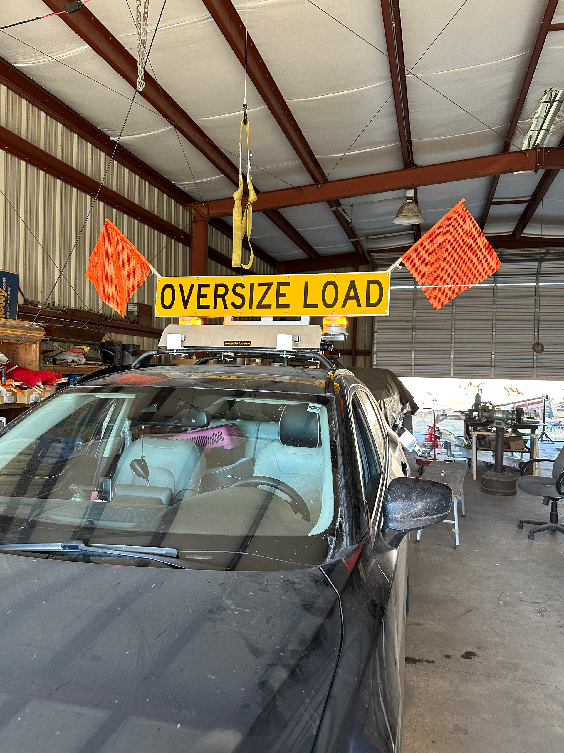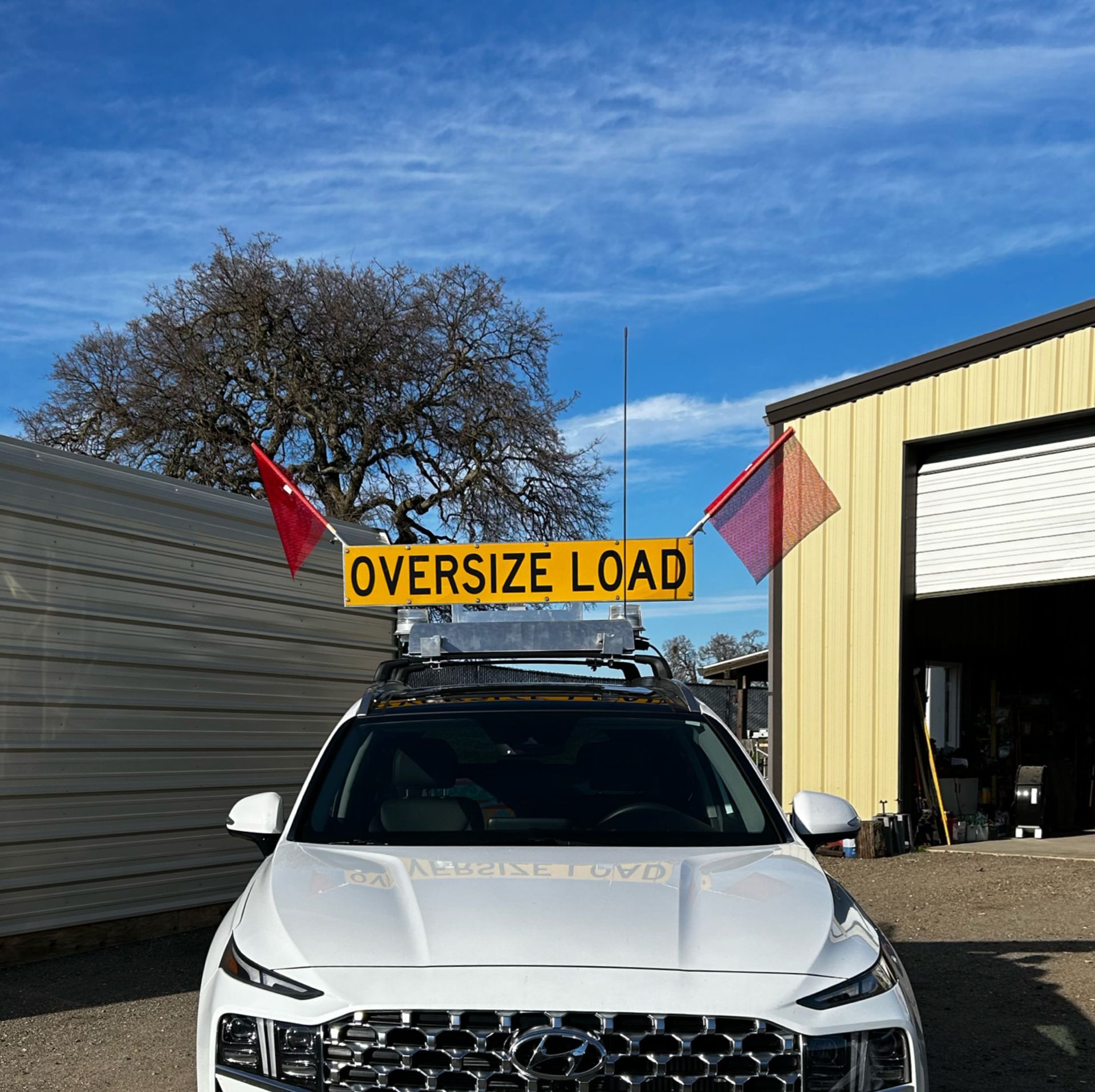 - A 10" x 60", two-sided and reflective "Oversize Load" sign with removable red flags